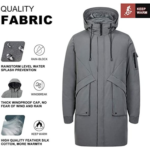 Men's Winter Coats Water-Repellent Windproof Thicken Parkas Long Hooded Padded Puffer Jacket